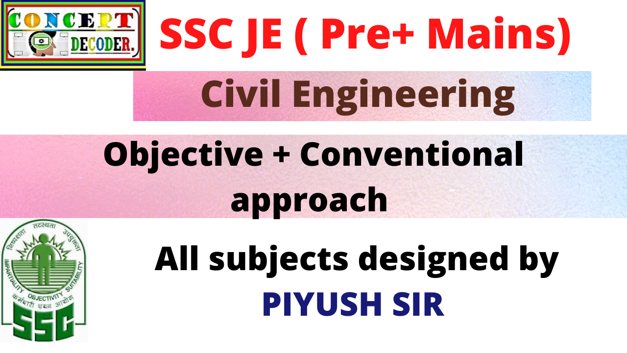 Btsc je walo isme join Karo saab 1.This course is a special course which has been designed by PIYUSH SIR 2. PIYUSH SIR HAS 06 YEAR Teaching Experience for IES GATE SSC JE & STATE AE/JE Examinations FEATURES OF THIS COURSE :- 1) All subjects cover in detail ( objective + Conventional approach) 2) all subjects previous year question with detail error free video solution 3) Subject wise test series 4) Surpise test 5) Regular doubt support 6) PDF OF PRACTICE QUESTION 7) Daily quiz NOTE :- SOME SUBJECTS LIKE :- SOM, RCC, FLUID MECHANICS ,OCF, SOIL MECHNICS ARE FREE FOR ALL STUDENTS . WATCH FROM OUR YOU TUBE CHANNEL FROM @CONCEPT DECODER